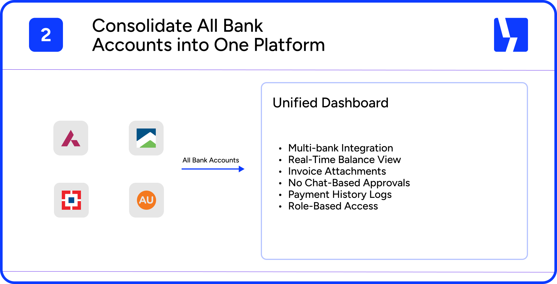 Centralize your approvals. Define clear roles. Make sure no payment moves without documentation and context. Build visibility across your bank accounts before you authorize funds.