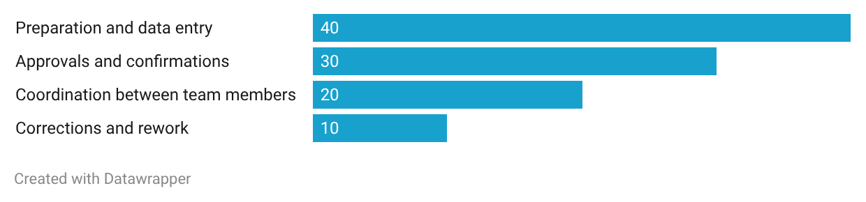 The above chart shows that most of the time is spent on preparation and approvals, while corrections and coordination quietly drain the team’s energy.