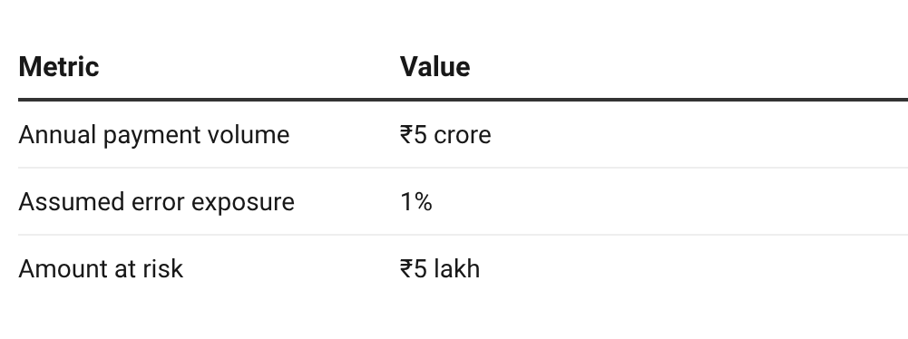 Manual processes increase the likelihood of mistakes, ranging from duplicate payments to incorrect beneficiary details, wrong amounts, missed approvals, and late settlements. Even a minor error rate can lead to substantial financial exposure.